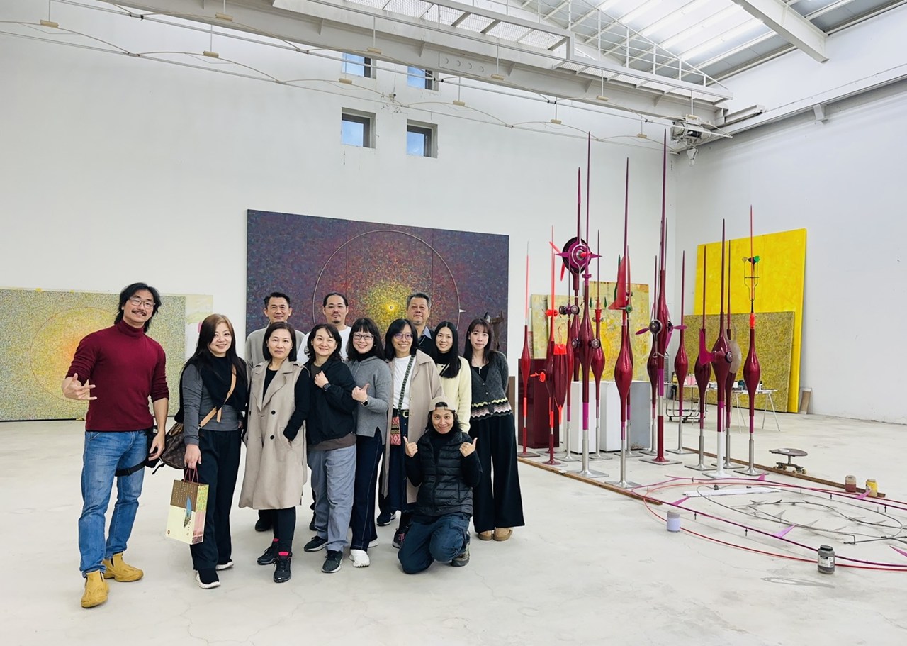 下午兩點老公載去宜蘭五結,在此與北藝大涂維政老師和在職同學們會合,參訪一位在職學長爸爸-黃銘哲的藝術家工作室。他們買了1600坪的地,舊糧倉有800坪來改裝,倉庫非常大,有三間以上,整個裝潢成白色,環境很乾淨簡潔。其中有一間特別大,放了尺幅巨大的畫作與雕塑品,這種空曠感與巨幅感總是震攝人心,有莫名的空間影響力。學長表示,這裡是用大型的掃地機器人,方便許多,但每次需檢查機器人內裡是否吸到不該吸的工具或東西。