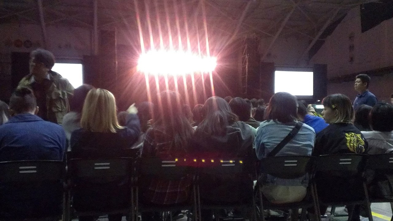 過後,饒舌樂團就下台了,而觀眾席的燈光也突然打亮了
