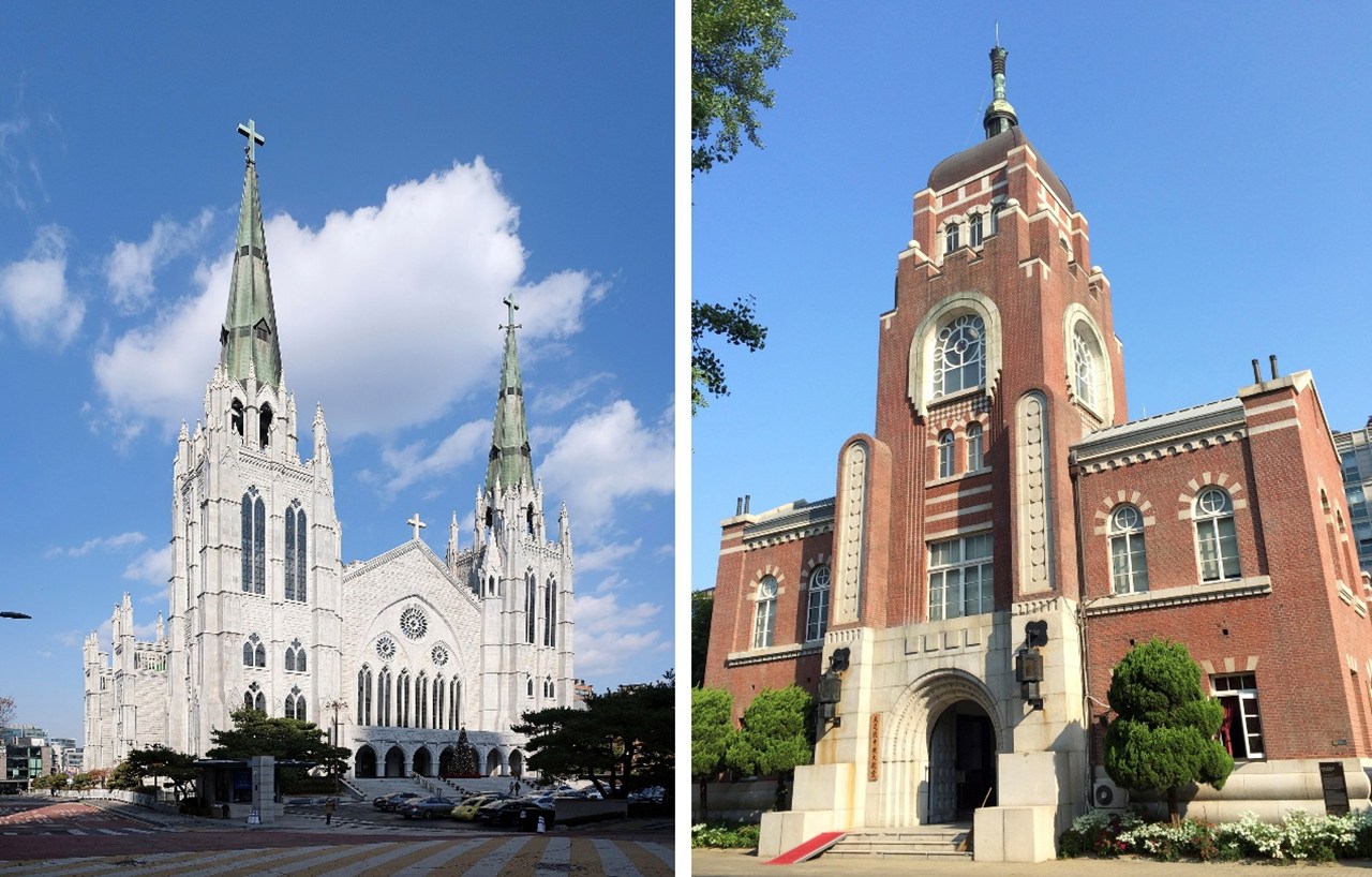 左圖:基督教忠賢教會。右圖:安國洞 天道教中央大教堂